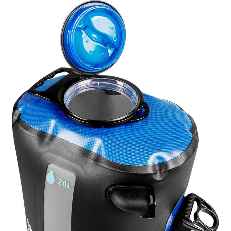 Big Water Hole and Long Hose:Â A big cap with a 2-meter long hose allows you comfortably to pour water into the bag. You can adjust the pressure of the water coming out of your shower bag to up to a 2-meter distance. The bag has a 20-liter water capacity allowing to take an appropriate shower while on the go.
