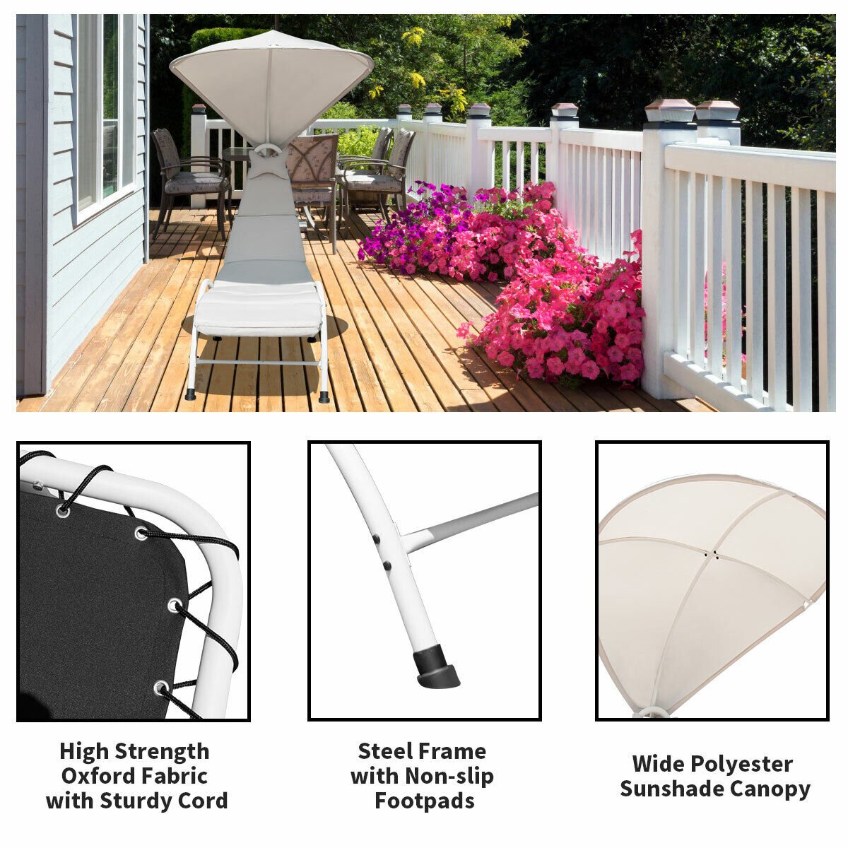 Experience ultimate comfort and style with the Patio Chaise Lounge Chair. Equipped with a canopy and adjustable backrest, this Chaise Lounge is perfect for relaxing in your garden or on the patio.Â