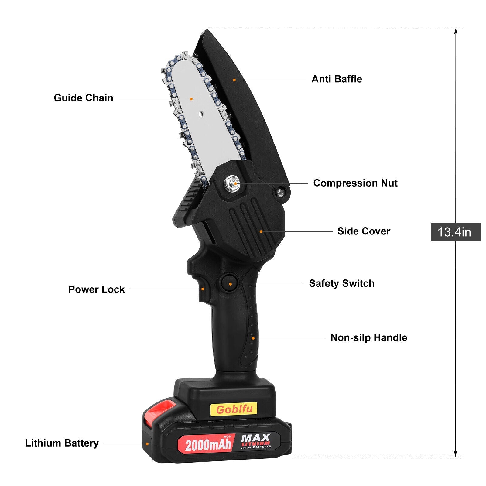 Large Capacity Lithium Battery: Powered by a 350W 24V 2000mAh rechargeable lithium battery, enjoy 1-2 hours of portable, low-energy chainsaw use for efficient garden beautification.