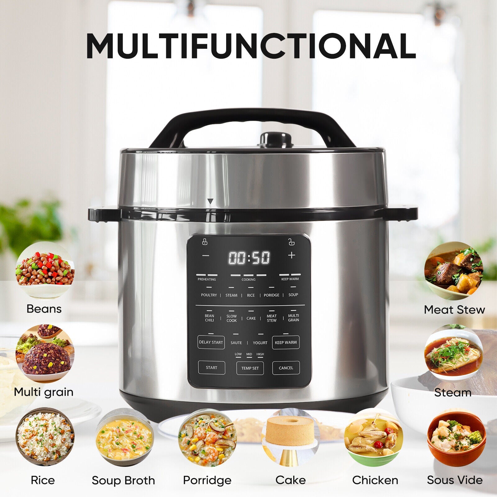 6 Qt 12-in-1 Pressure Cooker Rice Cooker - Multi-Cooker with Bonus Accessories