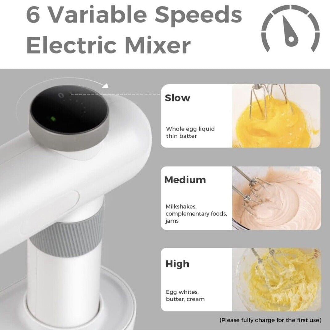 Cordless Convenience: Bid farewell to tangled cords and hazardous short-outs with this Electric Hand Mixer's 100% cordless design. Say hello to a safer, uncluttered kitchen where you can move freely.