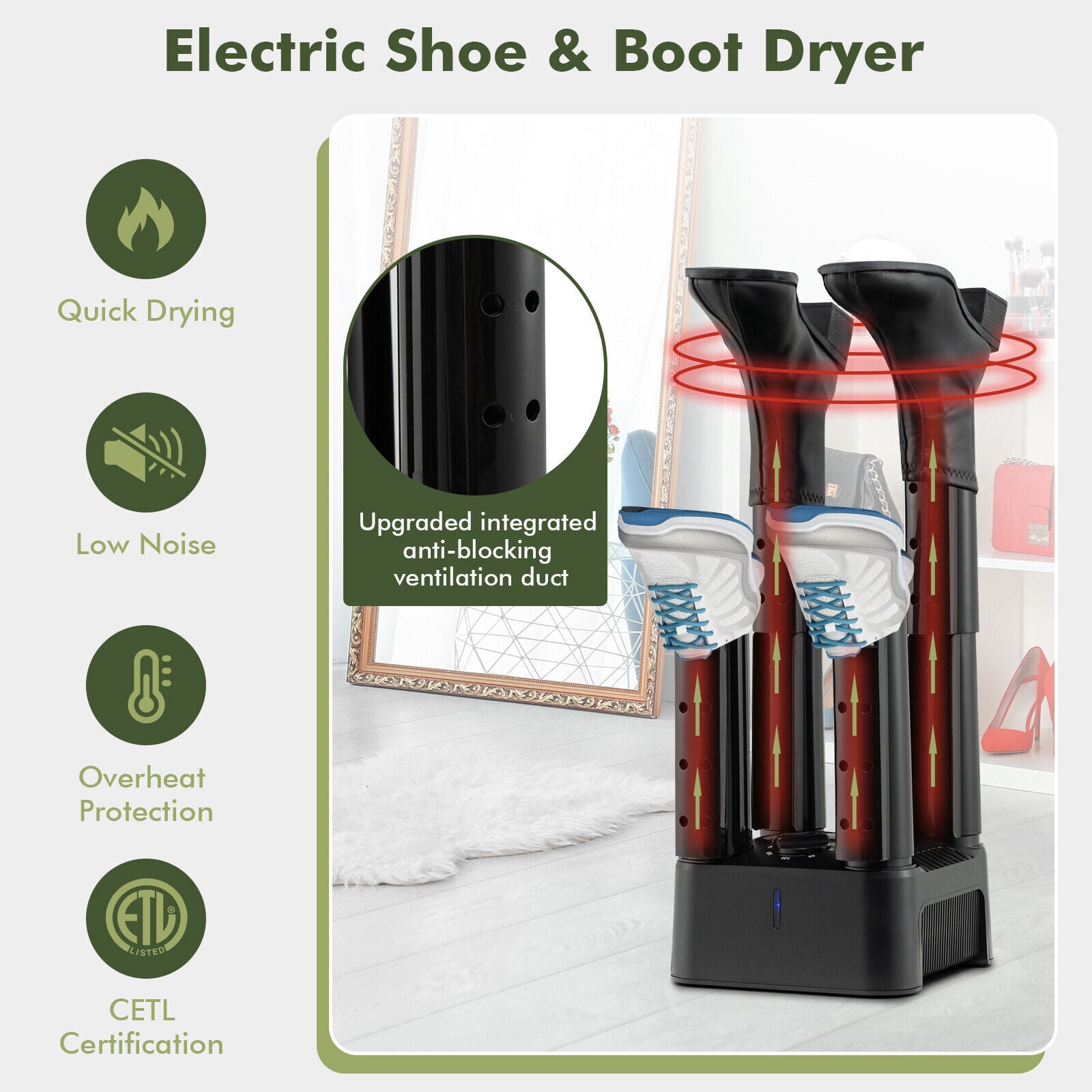 Electric 4 Shoe Dryer with Timer and Fan - Odor, Mold, and Bacteria Prevention