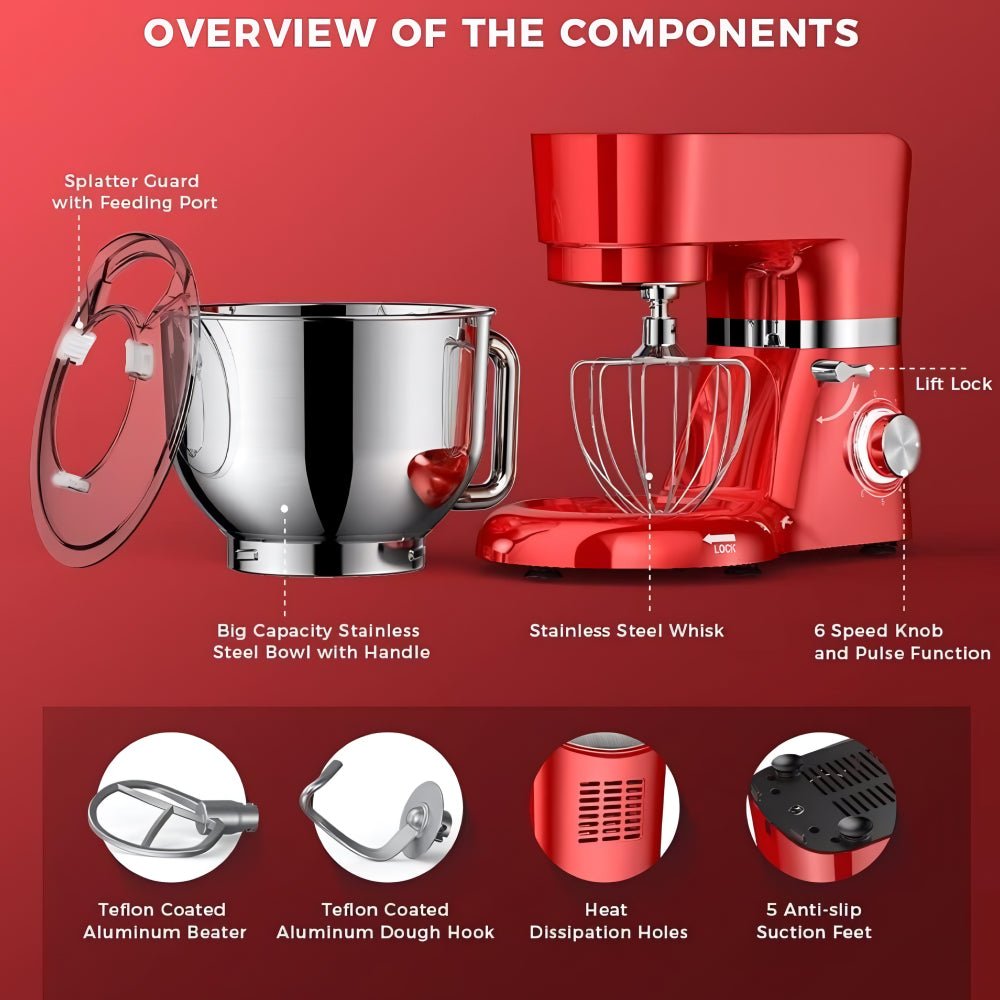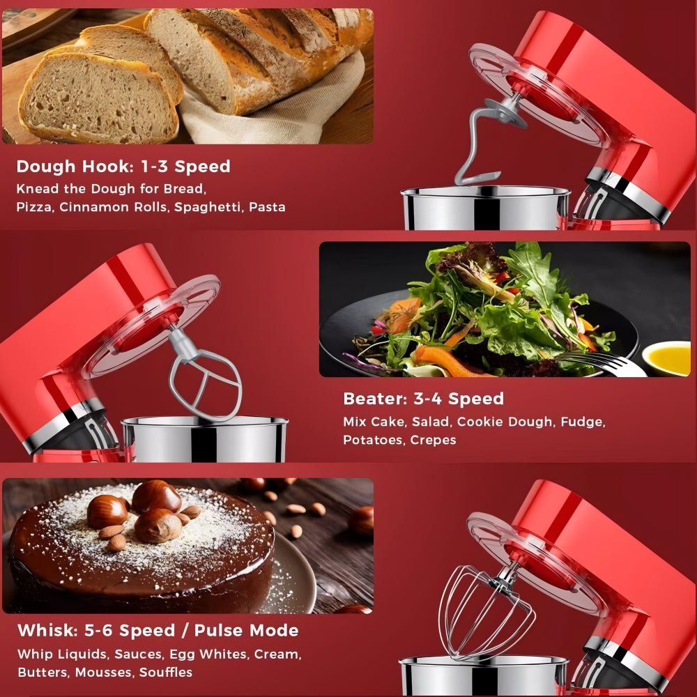 Multi-Functional Attachments: This food mixer comes equipped with a dough hook, mixing paddle, and whisk to accommodate all your baking and cooking needs. Whether you’re preparing bread, cakes, cookies, or whipped cream, the right tool is always at your fingertips. Plus, all attachments are dishwasher safe for hassle-free cleanup.