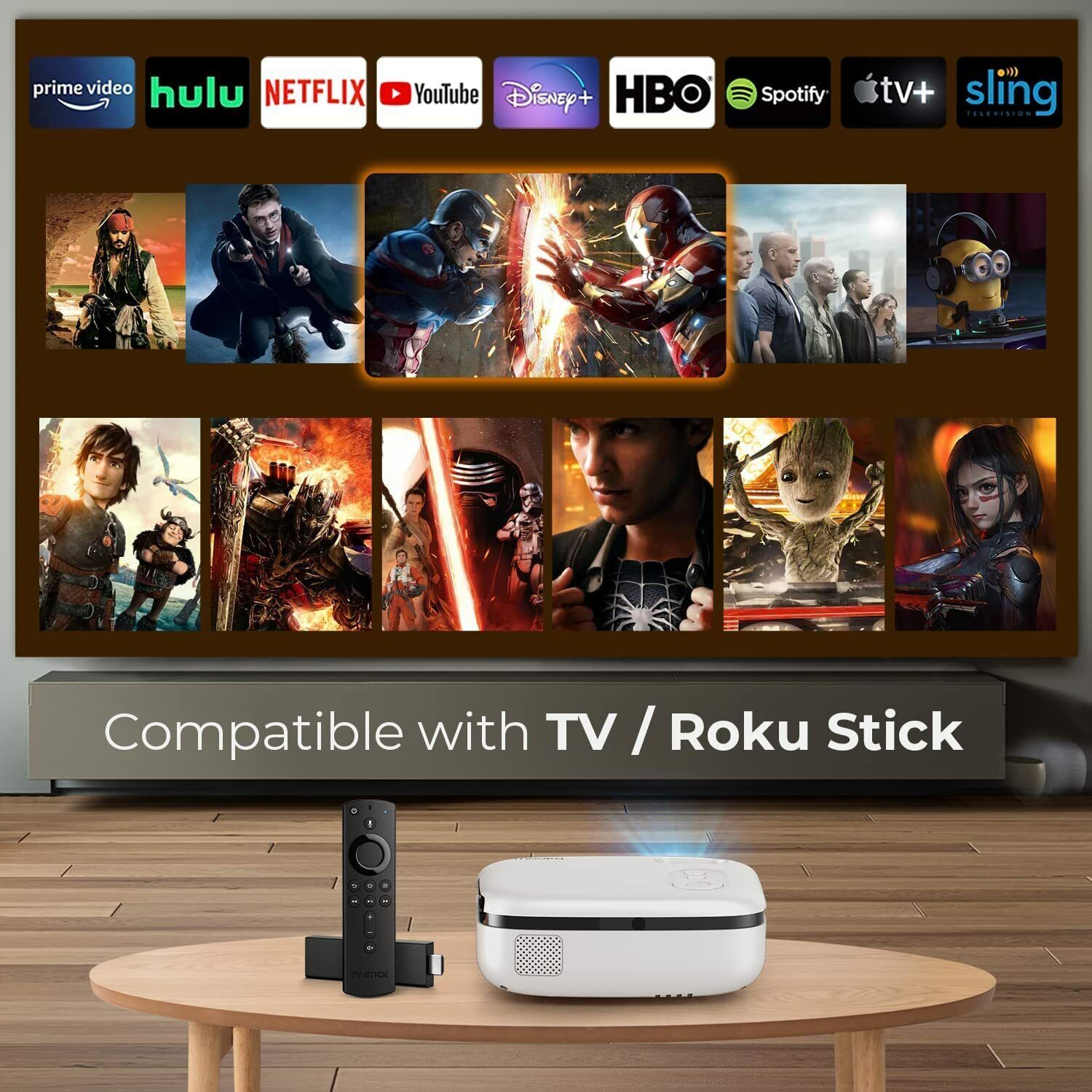 High Resolution 1080P Portable Mini Projector 7500 Lumens for Indoor/Outdoor Projection