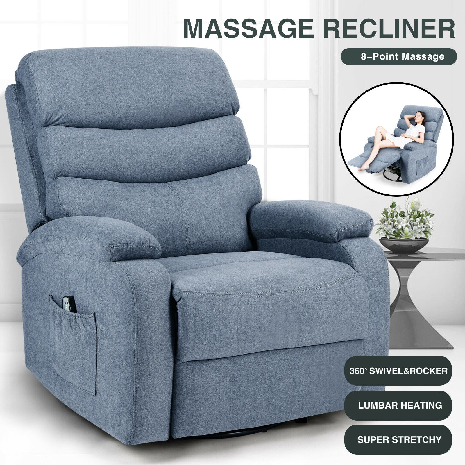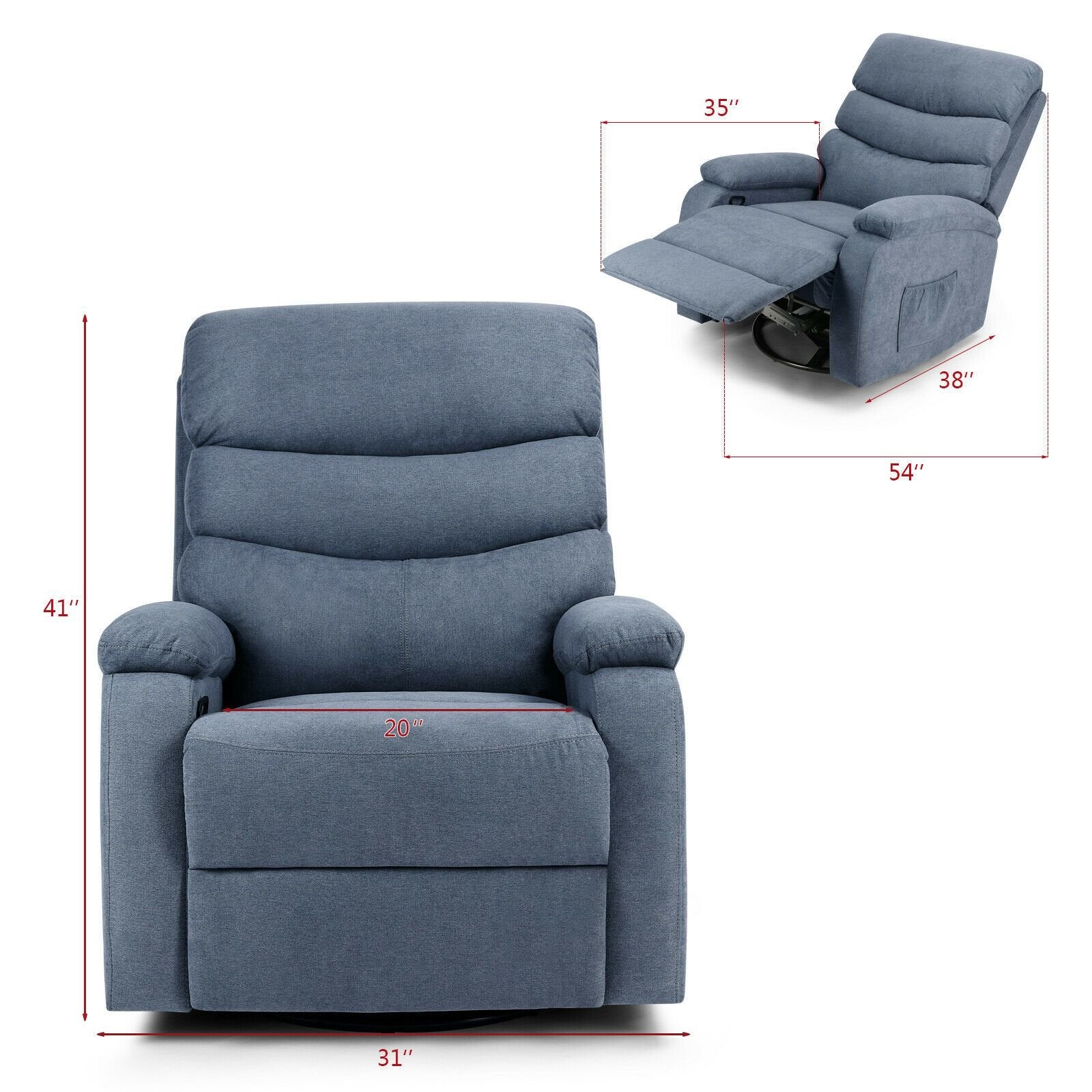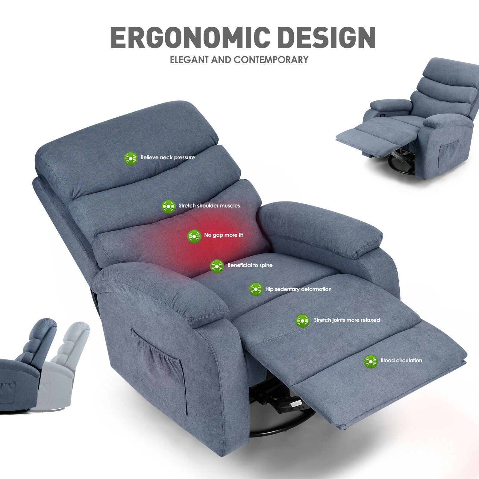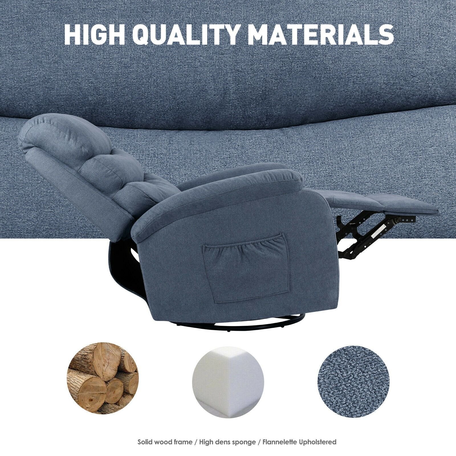 Pivotal Functionality: Designed for optimal mobility and relaxation, featuring a side handle that pulls for easy reclining and 360-degree swivel that promotes movement without restriction