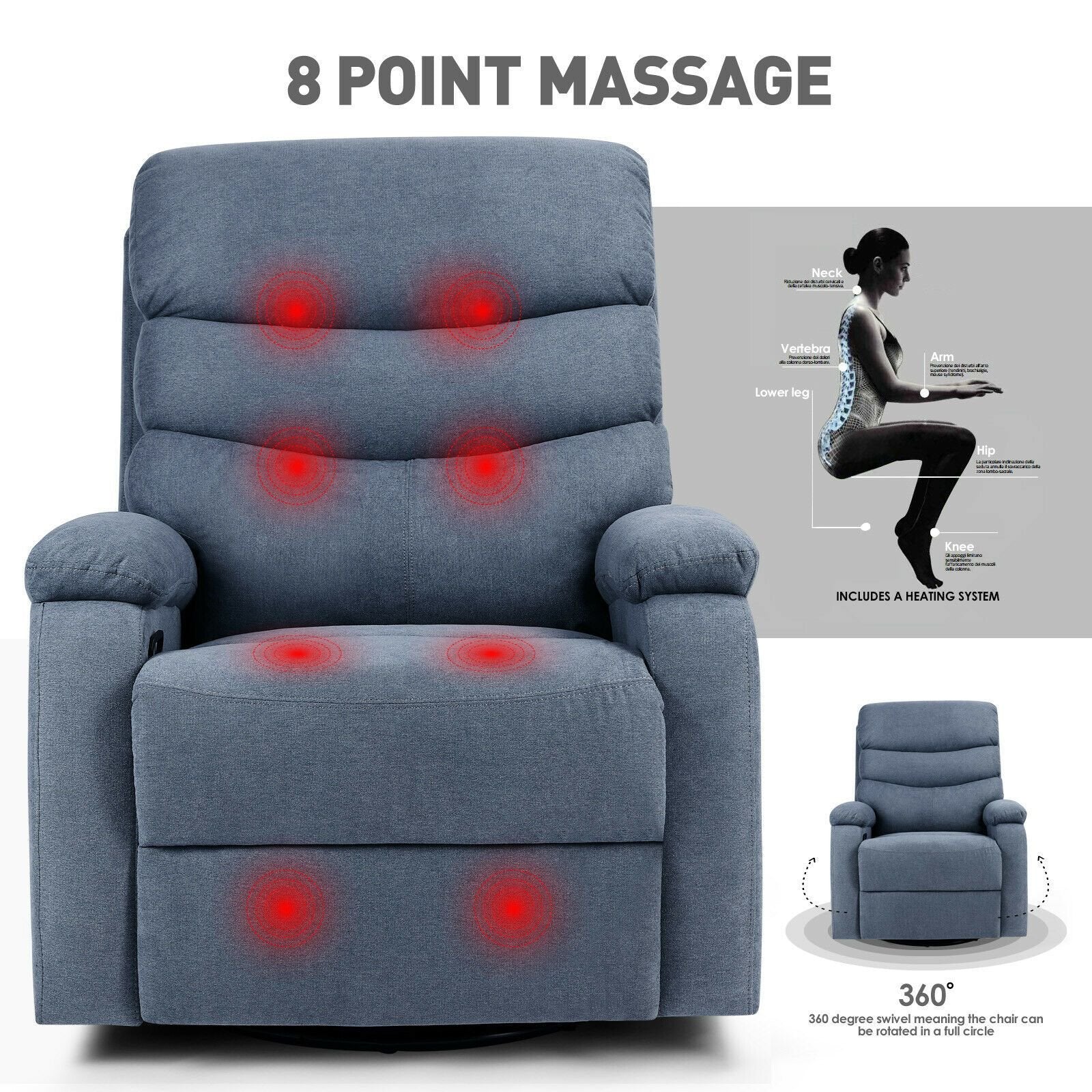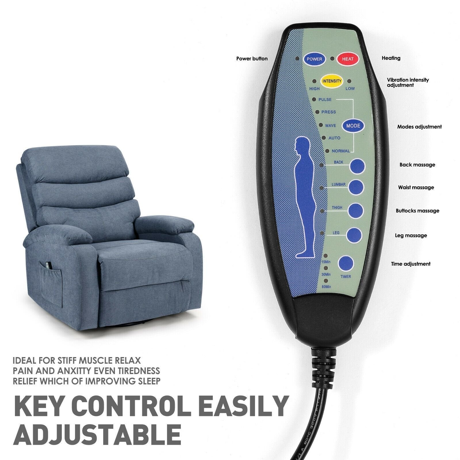 Heat & Vibration: Relaxing heat and vibration intensities are adjustable, specifically targeting and massaging stress points in the back, lumbar, thighs, and lower legs