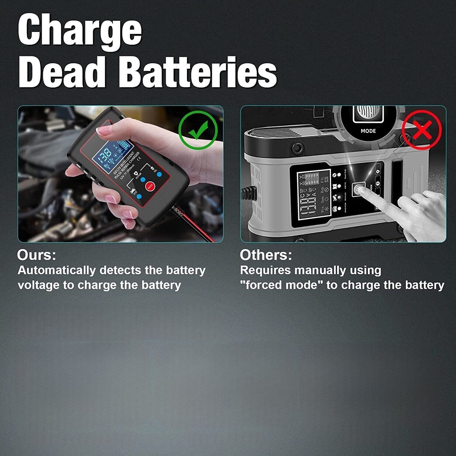 On-the-Go Power: Our Portable Car Battery Charger is a compact and reliable companion for charging your 12V batteries while you're out and about, ensuring you're never stranded with a dead battery.