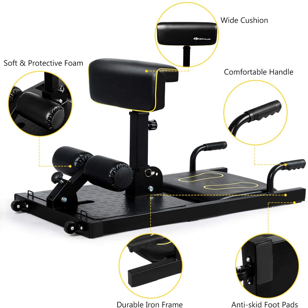 9 Level Adjustability: You can adjust the height of the mat and cylinders according to your height. Its wide cushion, soft protective foam, elastic band lock, comfortable handle, and durable iron frame makes it a perfect and reliable choice for every day home workout.