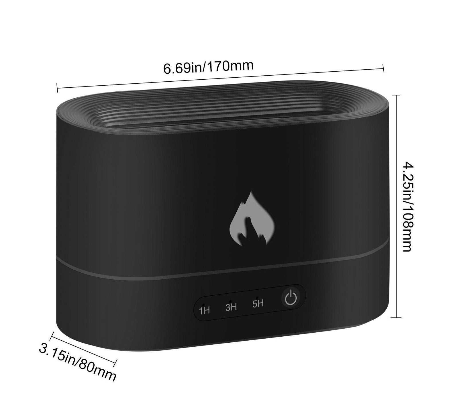The Air Humidifier and Essential Oil Diffuser is a perfect device to freshen up the air in your home or office. This Aroma Diffuser can also be used as a night light and its 3D flame gives off a soft, warm glow. This humidifier will automatically shut off when it runs out of water. You can also choose from three automatic shut-off settings (1, 3, and 5 hours) according to your specific needs.