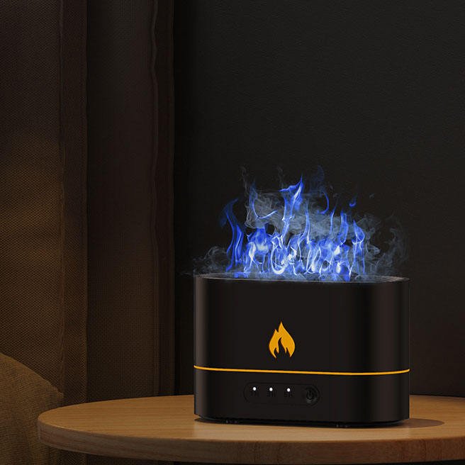 Purified Air Quality: Humidifiers add moisture to the air, which can be helpful in treating conditions like asthma, allergies, and colds. This USB-powered humidifier is Ideal for small spaces, and it has a built-in (Yellow and Blue) LED flame effect for a cozy atmosphere.