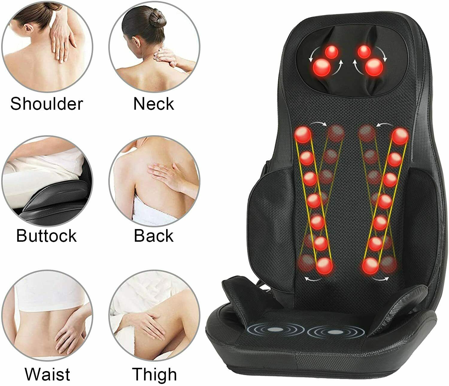 Ergonomic Design: The two separately designed parts are manufactured ergonomically. The neck part has two massage balls that move forward and backward. The back has Thai style rolling balls with two vibrating motors on each side to massage your back effectively. The cushion has three built-in motors, only for vibration that you can turn off when you do not require it.