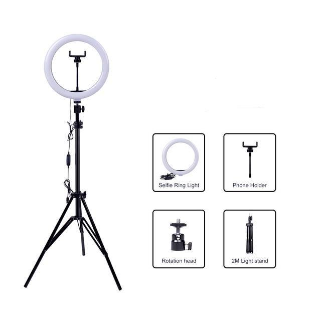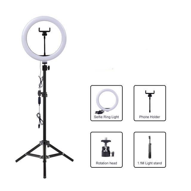 Our LED Ring Light with Stand and Phone Holder with its 3 Light Modes is perfect for photography, selfies, live streaming, YouTube videos and even for makeup purposes. With three lighting modes and ten brightness levels, you can find the perfect lighting to match your preferences.