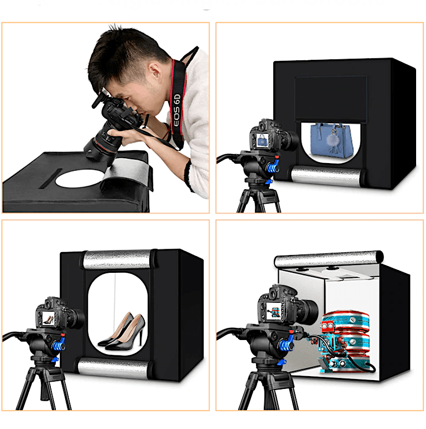 Multi-angle Shooting: The front window supports a horizontal shooting and the open window on the top supports a 90 degrees vertical shooting. Allow you to take great pictures in white background with different devices: phones, cameras or professional cameras.
