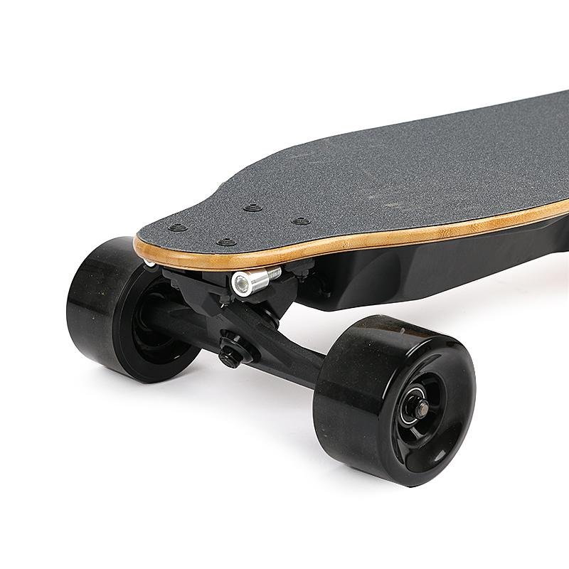 Max Load: This electric skateboard is made of 1 layer of glass fiber, 3 layers of carbonized bamboo, 1 layer of glass fiber cloth combined and high density diamond waterproof sand. This combination of high quality material will make your skateboard smooth to ride and providing a stable platform for riders weighting up to 264 lbs.
