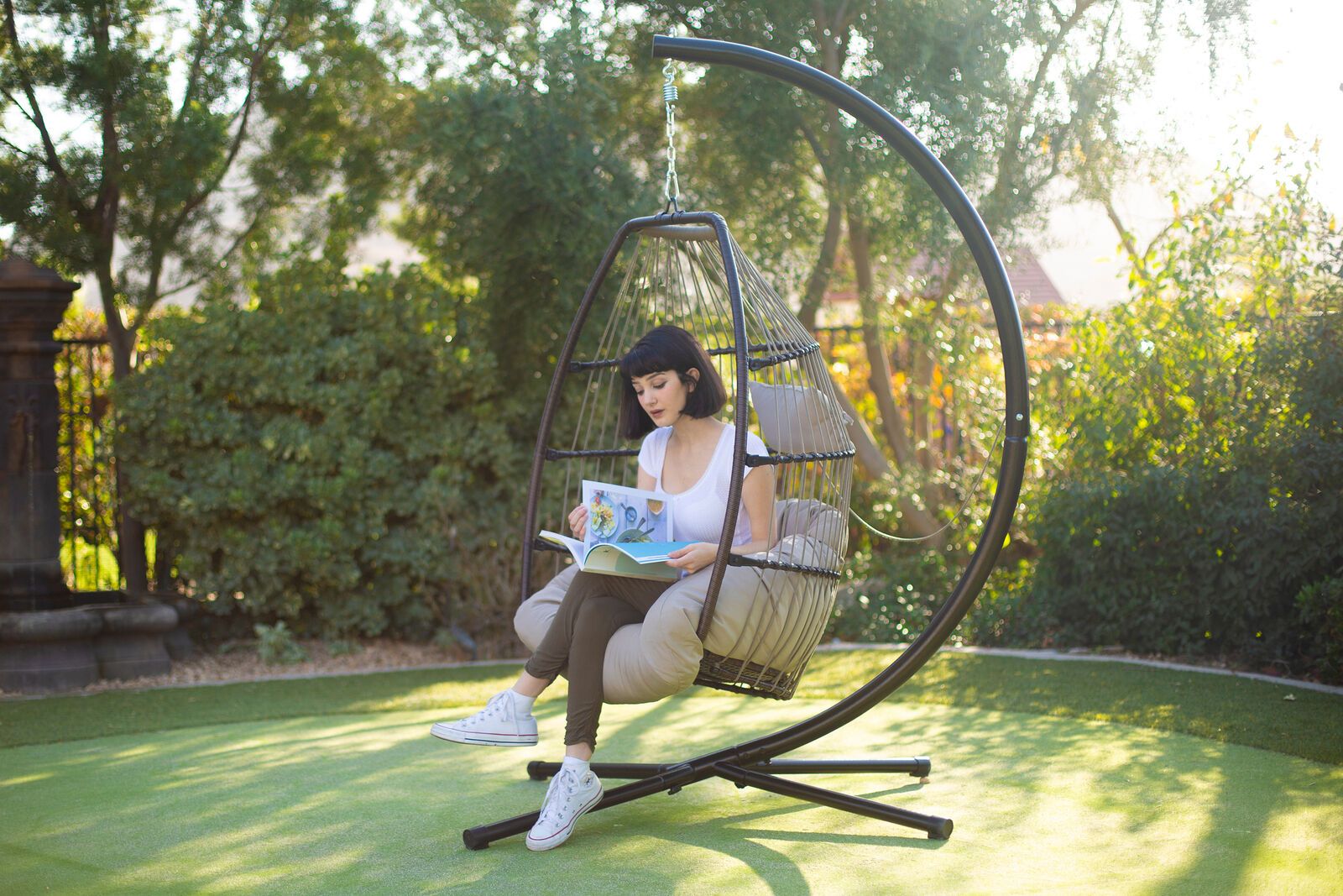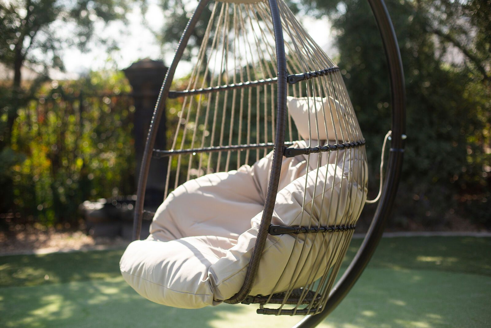 DON’T BE AFRAID OF FALLING: You don’t have to worry about bouncing back and spilling your coffee since this garden hanging seat is completely sturdy and safe! Thanks to the durable steel frame the egg swing chair won’t budge.