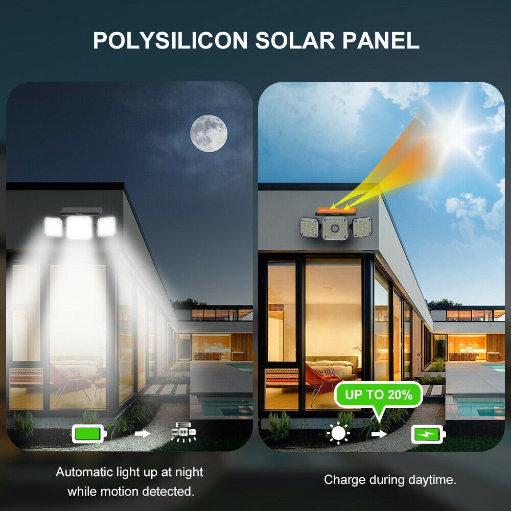 Motion Sensor: Our Outdoor Solar Powered Led Light has an intelligent light sensor that has a wide range angle of 120 degrees, and distance of 4 to 8 meters. It will reduce the energy spendings and automatically turn off when there is no movement in the area.