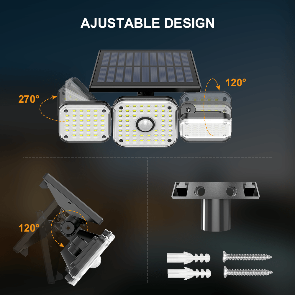 Ultra bright light: Our powerful outdoor motion sensor light has three adjustable heads with 112 super bright LED beads, that produce 1000 ml 6500K brightness output all together with a 270 degree beam angle. You can have your entrance or yard brightened up even in the darkest of night.