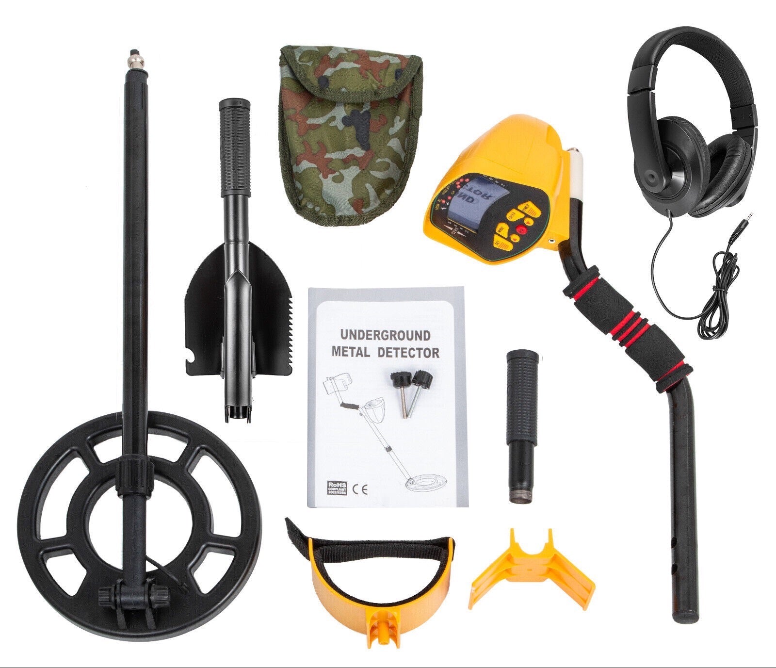 High-Accuracy Underground Metal Detector Kit w/ LCD Screen, Headphones, Shovel