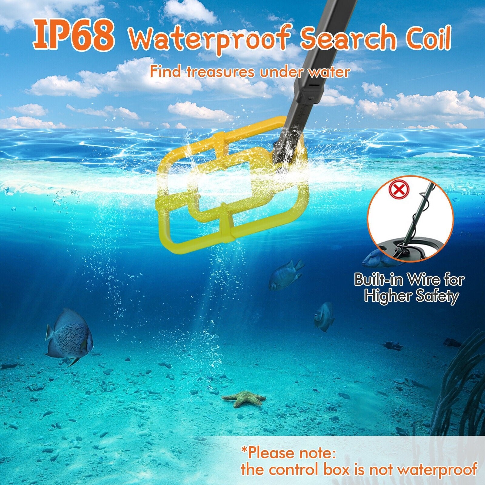 Waterproof: The High Accuracy Metal Detector Kit is extremely sensitive to the presence of metal, so you can quickly find treasures with ease. With an adjustable rod and 10" high sensitivity waterproof search coil, this detector is perfect for all types of terrain.