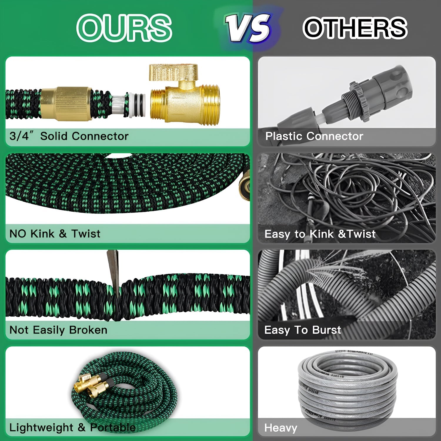 Avoid Messy Tangling Hoses: Say goodbye to frustrating tangles and knots! Our expandable garden hose easily expands and contracts with the flow of water, without the need for kinking or twisting.