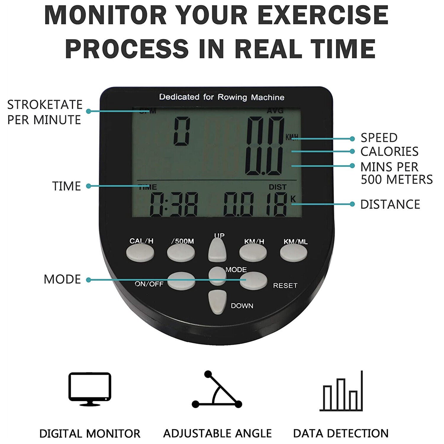 Track your progress: Our water rowing machine has an LCD panel with adjustable angles and various programs to keep you on track. Precisely measure the number of calories you want to burn, total distance, speed, time, etc.. and have real-time progress reports.