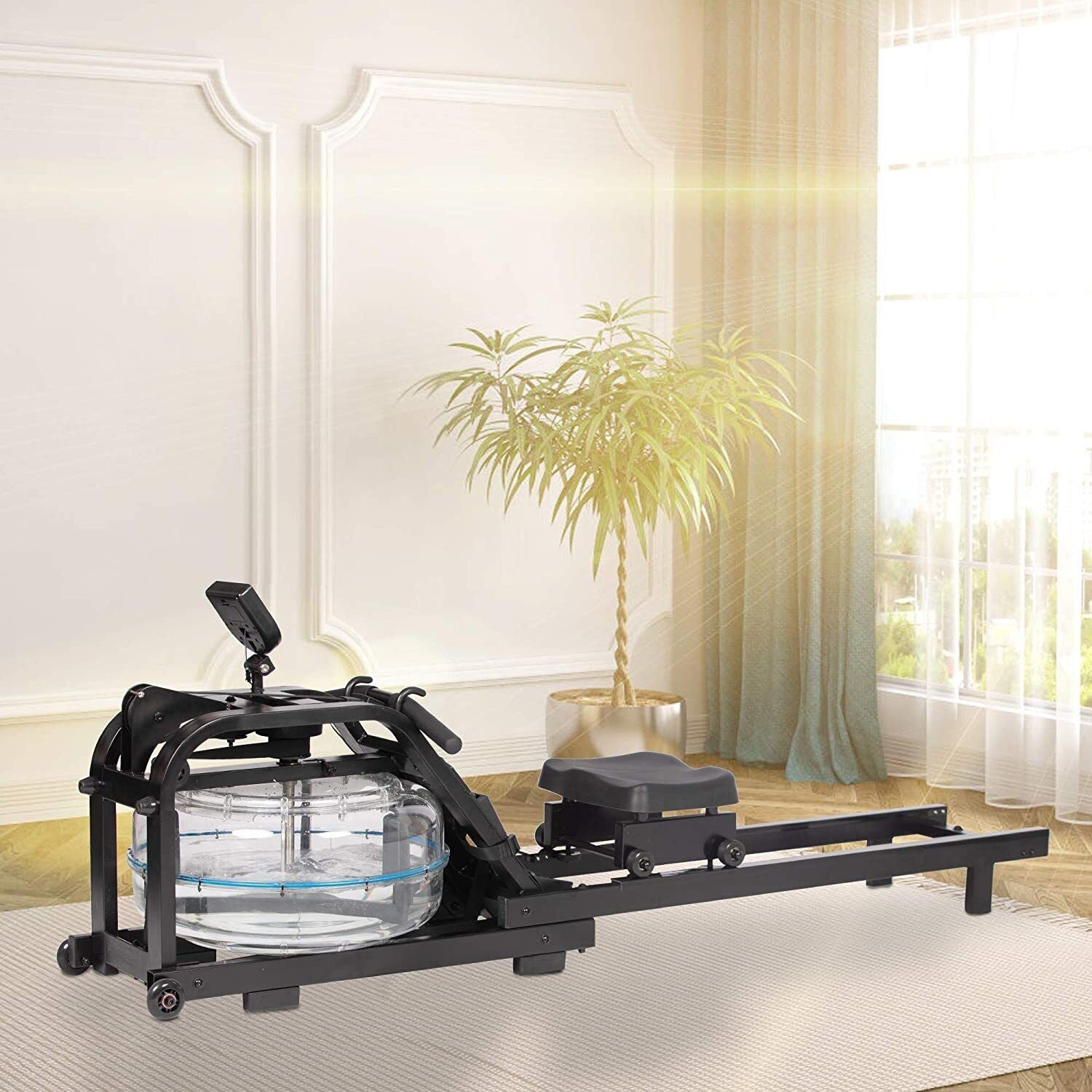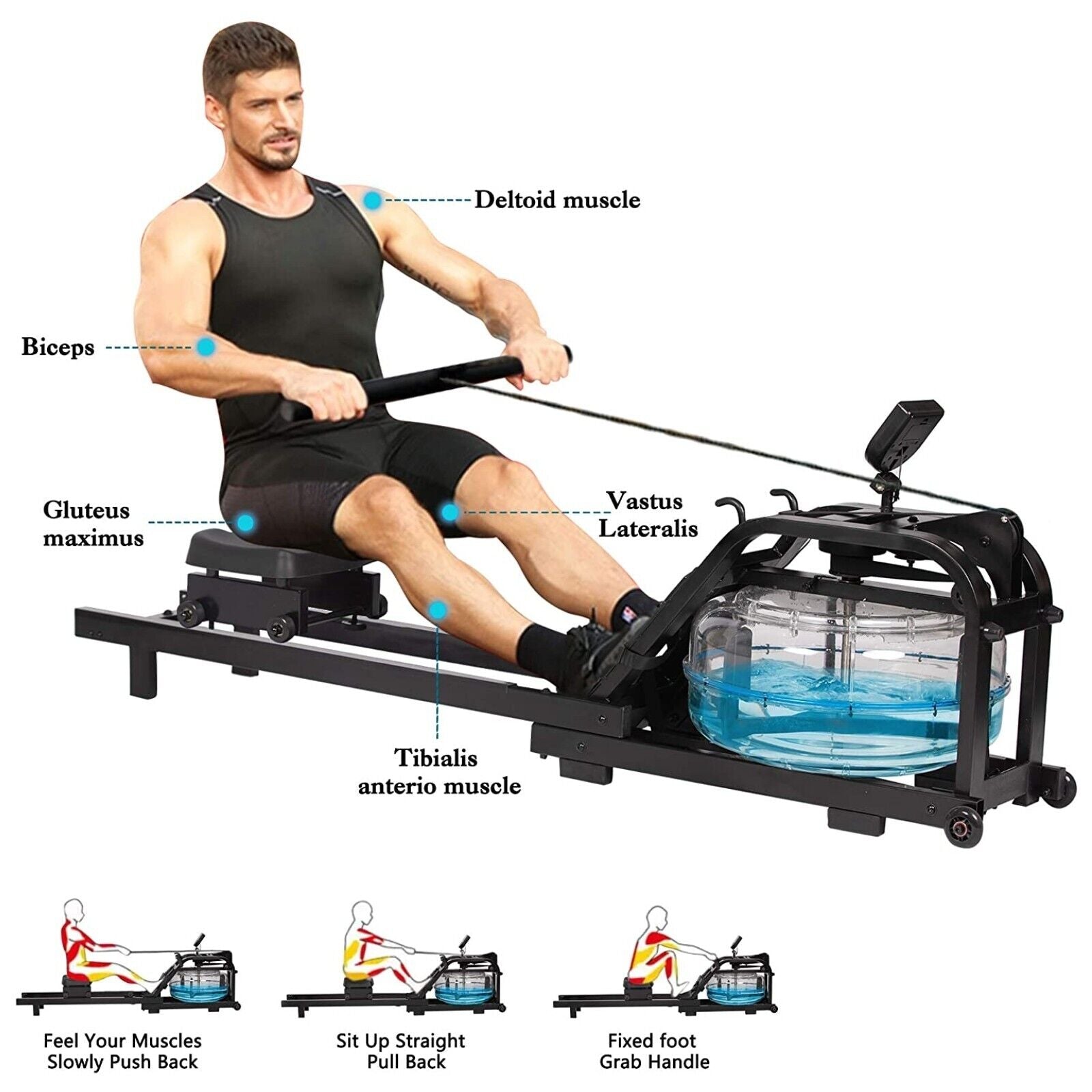 Water Rowing Machine W/Adjustable Resistance And LCD Screen For Home Full Body Workout